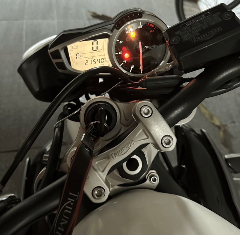 E foi exatamente isso que me conquistou quando comprei a minha Street Triple 675 2015, branca, carinhosamente apelidada de “Zoiuda” por causa do par de faróis peculiares. A moto tinha aquilo que a gente, apaixonado por duas rodas, reconhece na primeira volta: alma e personalidade.
